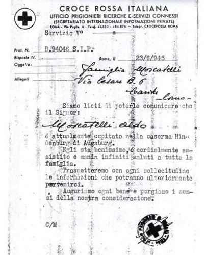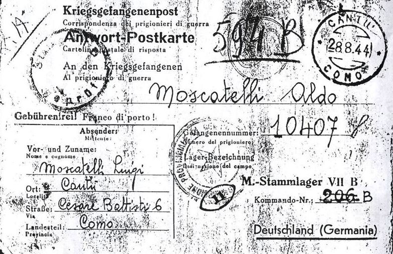Am 27.8.1944 wird Aldo Moscatellis aus dem Militärinterniertenstatus entlassen und in das zivile Arbeitsverhältnis übernommen. Am Zwangsarbeiterstatus änderte dies wenig, allerdings durften sich die Arbeiter ab diesem Zeitpunkt freier bewegen.