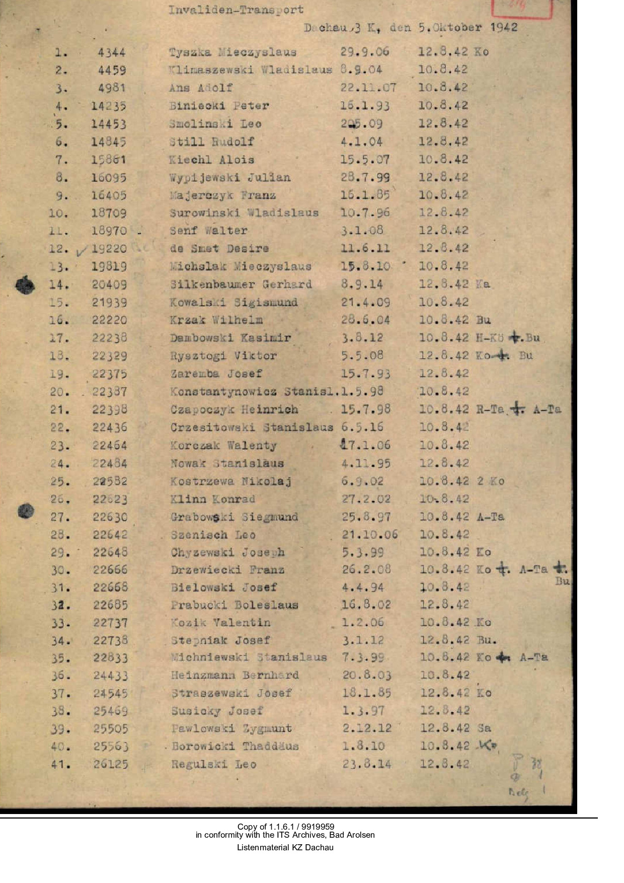 ITS Bad Arolsen, Alois Kiechl Nr. 10676671; 9919959; 10129721; 4090876;