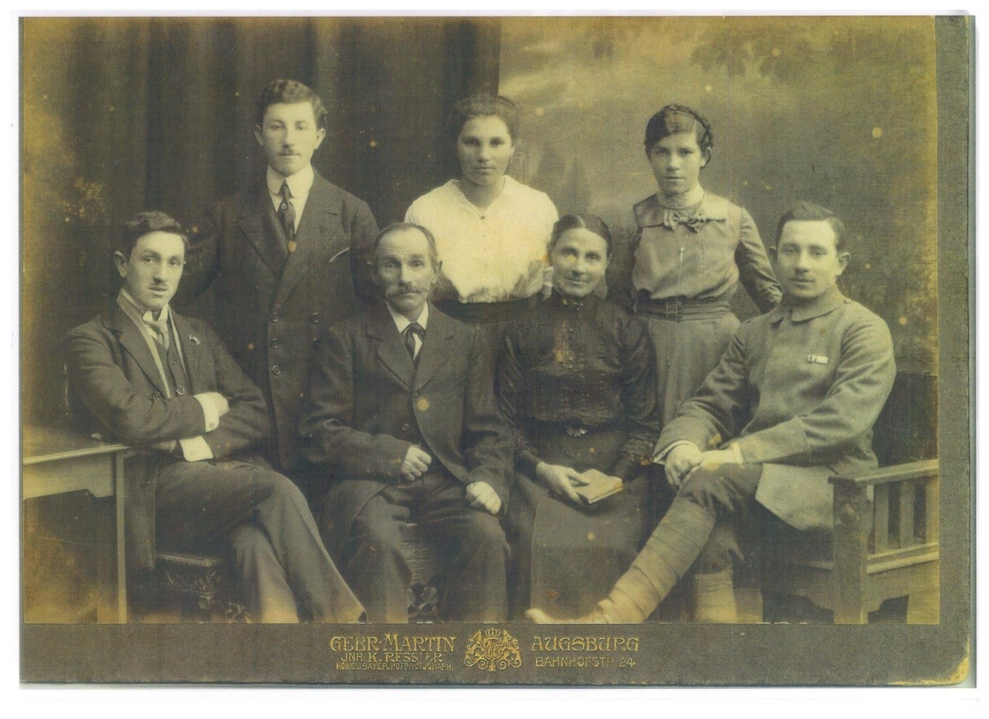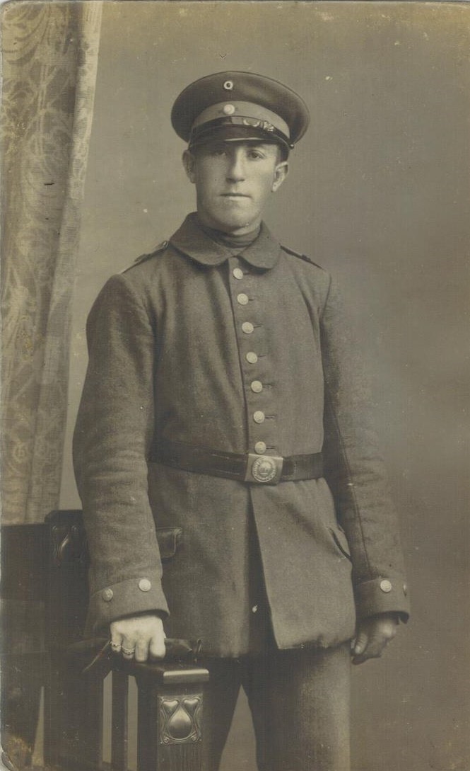 Im Alter von 21 Jahren wird er zum Heeresdienst eingezogen6 und „dient“ vom 25.2.1915 bis 9.11.1918 im Bayerischen Heer7 Er ist in der Prinzregentenstraße 1 in München gemeldet.8 Ob und wo er an die Front eingesetzt wird, wissen wir nicht. Als sein 2 Jahre jüngerer Bruder Martin eingezogen wird, macht die Familie ein Foto. Auf ihm ist Anton im Gegensatz zu seinem Bruder in Zivil abgebildet.9