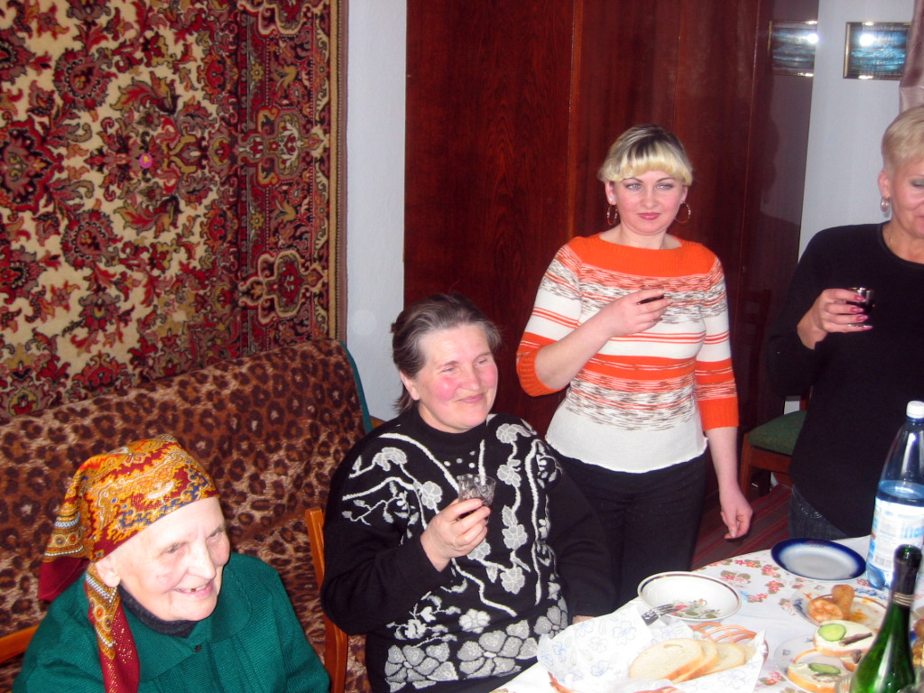 Dann geleitet sie uns ins Haus, zwei Töchter und die Enkelin sind da und haben die Vorbereitungen für diesen Tag getroffen, der anscheinend für die ganze Familie ein Festtag ist. Wortreich dankt sie mir für die in den letzten Jahren geleistete Hilfe. Dadurch habe sie sich einen Gasanschluss leisten können. Dennoch ist es höchste Zeit, dass ich sie besuche, denke ich mir, denn Bronislawa hat nicht einmal einen Wasseranschluss im Haus. Der Brunnen für alle Einwohner befindet sich auf der Straße, von dort beziehen sie ihr Wasser zum Kochen und Waschen. Unvorstellbar, aber hier wird das klaglos hingenommen, man kennt es nicht anders.