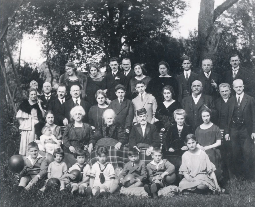 Familienfoto anlässlich der Goldenen Hochzeit von Salomon und Ricka Mühlhauser, Krumbach, 1923. (Yoram Millo)