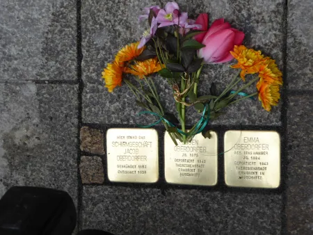 Am 4.5.2017 wurden in der Maximilianstrasse 17 in Erinnerung an Eugen und Emma Oberdorfer Stolpersteine verlegt.
