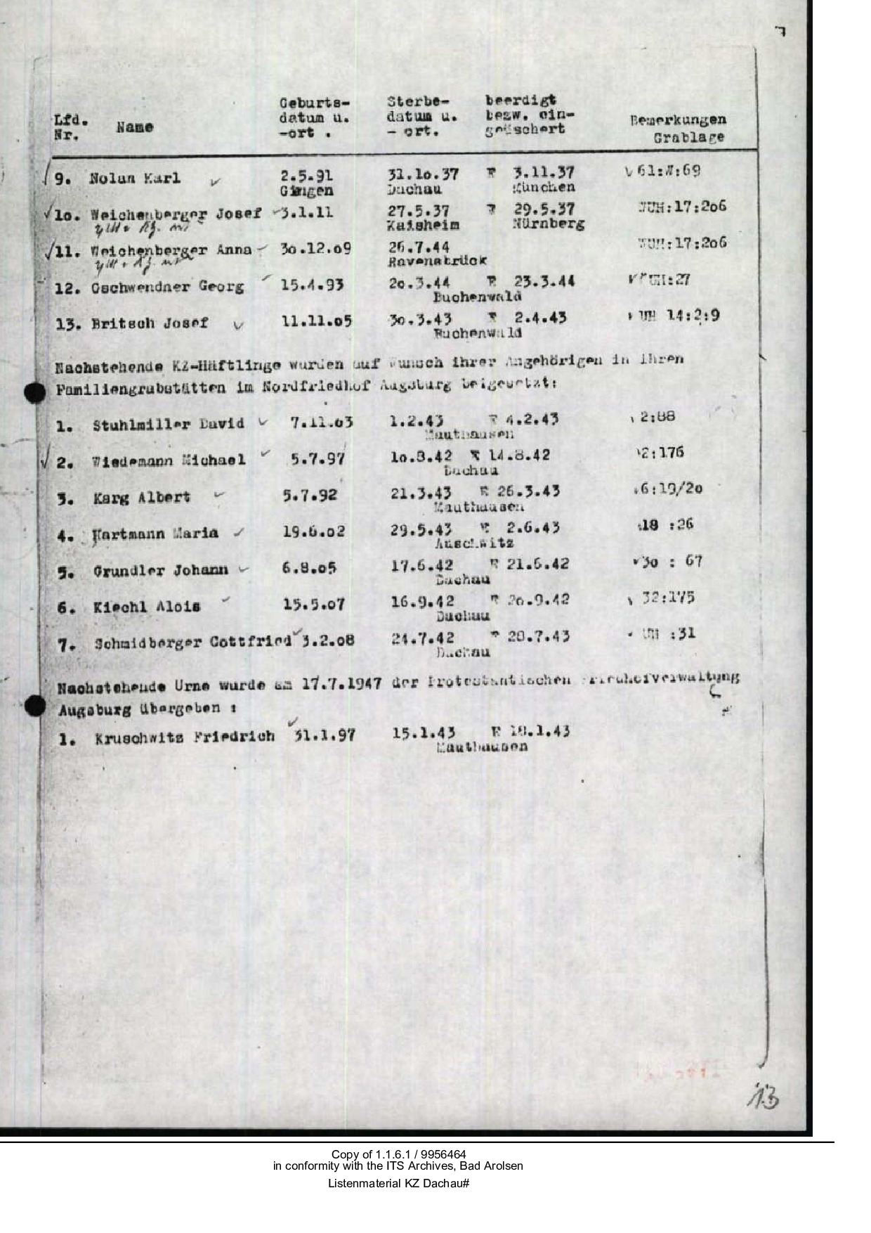 ITS Bad Arolsen, Alois Kiechl Nr. 10676671; 9919959; 10129721; 4090876;