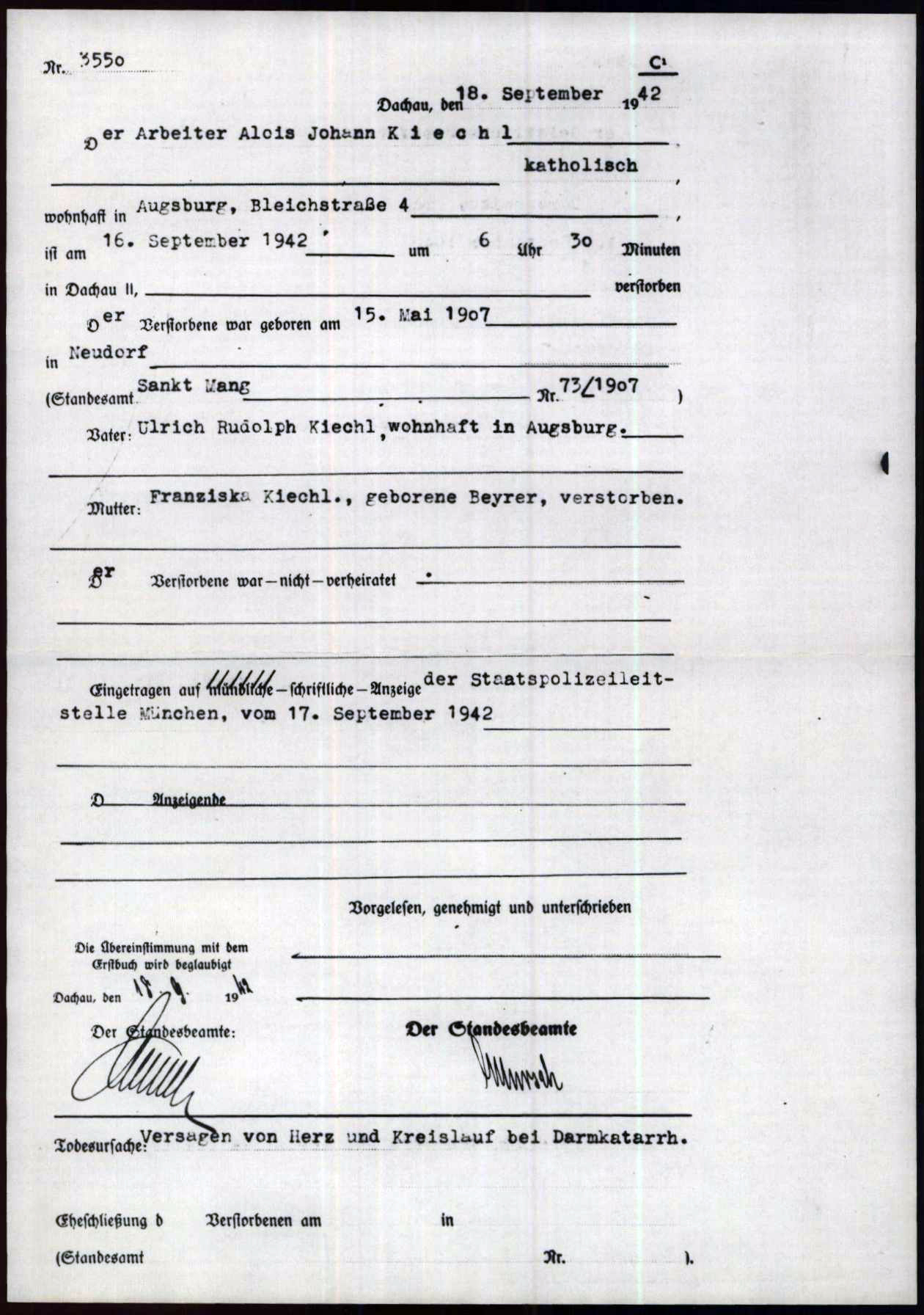 23. ITS-Archives, Bad Arolsen, 1.1.6.2./10129722 Sterbeurkunde Nr. 3550 vom 18. September 1942