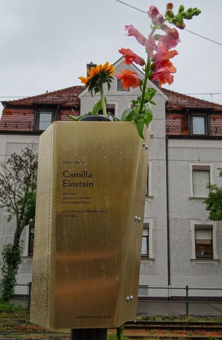 Am 29. Juni 2017 wurde ein Erinnerungsband für Camilla Einstein in der Ulmer Straße 121 angebracht.