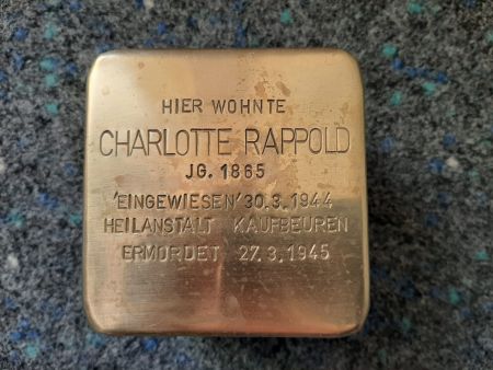Am 14. Juli 2020 wurde für Charlotte Rappold, geb. Blatter ein Stolperstein verlegt.