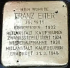 Franz Eiter geb. 29.3.1911 in Augsburg, ermordet in der Heil- und Pflegeanstalt Kaufbeuren am 31.3.1945