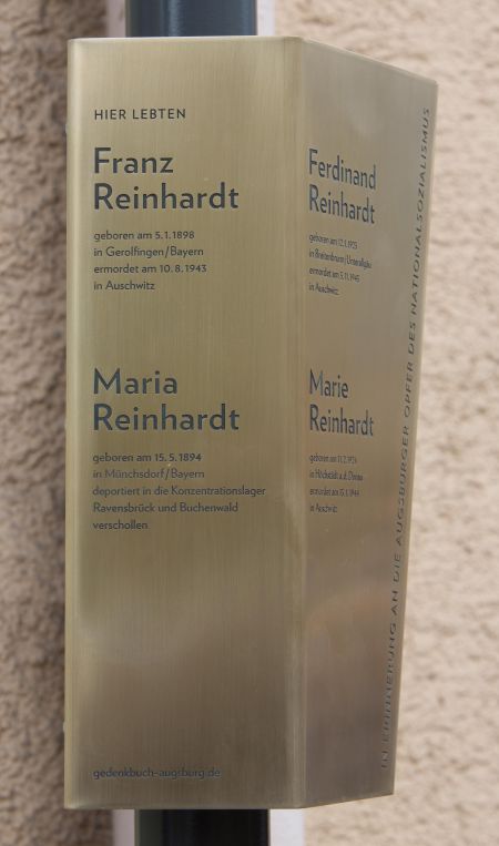 Am 4. Mai 2017 wurde ein Erinnerungsband für die Familie Reinhardt in der Donauwörther Straße 90 angebracht.