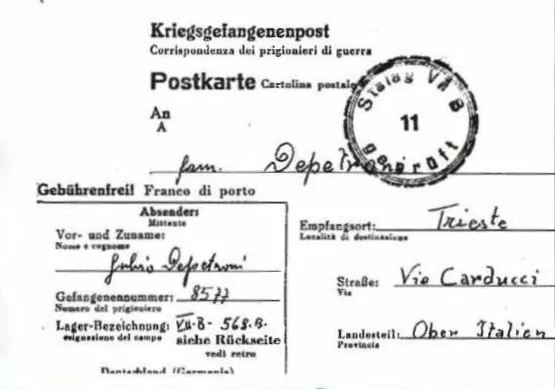 Einige Tage vor Kriegsende, am 30.4.1945 verlässt Fulvio Depetroni mit einem Begleitbrief versehen das Lager und erreicht größtenteils zu Fuß die von den Titotruppen besetzte Heimat Trieste.