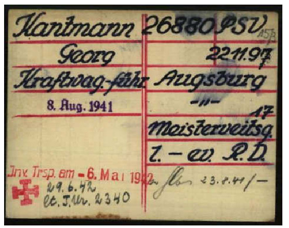 Am 8. August 1941 kommt Georg Kantmann ins KZ Dachau mit der Haftkategorie: „polizeiliche Sicherungsverwahrung“.10 Er hat die Haftnummer 26880.