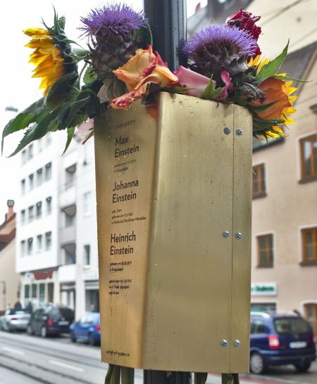 In der Ulmer Straße 185 lebten bis 1942 Mitglieder der Großfamilie, denen die Viehhandlung „Gebrüder Einstein“ in Kriegshaber gehörte. Die Firma mit ihrem bis ins Allgäu reichenden Handelsgebiet zählte bis zur Machtübernahme der Nationalsozialisten zu den renommiertesten Viehhandelsunternehmen in Schwaben.
