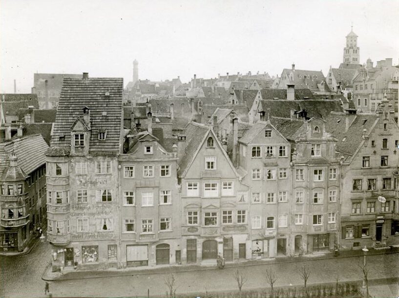 Das Wirtschaftsleben der Stadt an Wertach und Lech wurde auch durch jüdische Geschäftsleute wie Hermann Wolf geprägt.17 Zusammen mit seinem Schwager Benno Höchstädter führte er die Textilwarengroßhandlung Hermann Gscheidlen.18 Die Firma befand sich im gleichen Haus wie die Wohnung der Wolfs am Elias-Holl-Platz 8. Die Familie lebte in gutbürgerlichen Verhältnissen, die Wohnung hatte 4 bis 5 Zimmer sowie ein zusätzliches Dienstmädchenzimmer, da sie stets eine Hausangestellte beschäftigte.19
