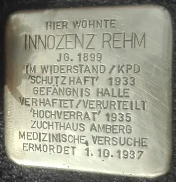 Ein Gedenkstein erinnert an 46 Konzentrationslager-Häftlinge am Sammelgrab auf dem Amberger Katharinenfriedhof. Unter den Opfern ist auch Innozenz Rehm. Dort wird auch an Weichenberger Josef erinnert.