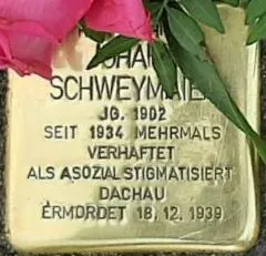 Fazit: Johann Schweymaier wurde zum Teil Opfer der sozialen und politischen Umstände der Weimarer Republik und definitiv Opfer der Ideologie und der rigiden Ordnungsvorstellungen des NS-Terrorregimes. Er wurde wegen geringfügiger, trivialer Vergehen immer wieder inhaftiert und als mehrfach vorbestrafter Häftling schließlich ermordet.