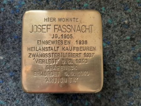 Am 14. Juli 2020 wurde für Josef Faßnacht ein Stolperstein vor der Schöpplerstraße 10 verlegt.