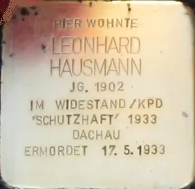Für Leonhard Hausmann wurde am 14. Oktober 2017 vor der Ulmer Straße 52 ein Stolperstein verlegt.