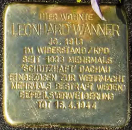 Für Leonhard Wanner wurde am 14. Juli 2020 vor der Ludwig-Hermann-Straße 35a in Gersthofen ein Stolperstein verlegt.