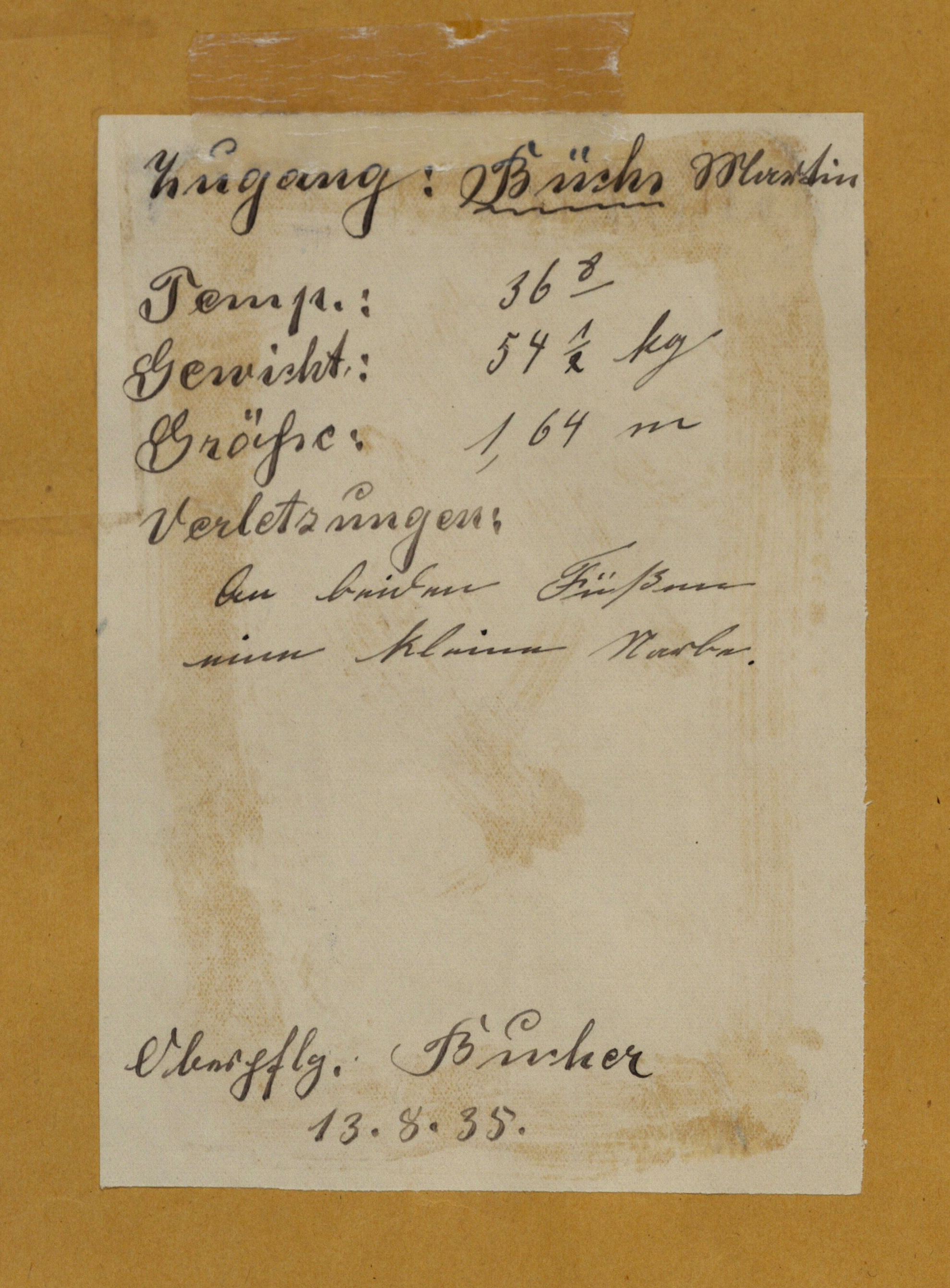14. BA Berlin, R-179/761 Martin Büchs, Patientenbogen HuPflA Kaufbeuren, 23.10.35. So auch die Diagnose von Dr. Friedhelm Katzenmaier, Augsburg 11.7.25, der mir im Umgang mit den historischen Analysen behilflich war. Hierfür gebührt ihm mein aufrichtiger Dank.