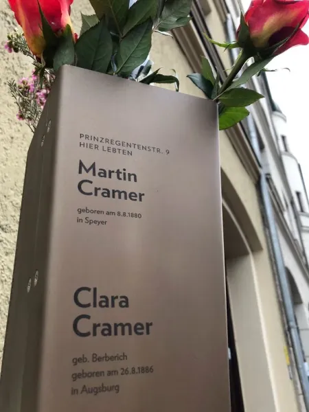 Am 17. Januar 2020 wurde vor dem Haus Prinzregentenstraße 9 das Erinnerungsband für die Familie Cramer enthüllt.