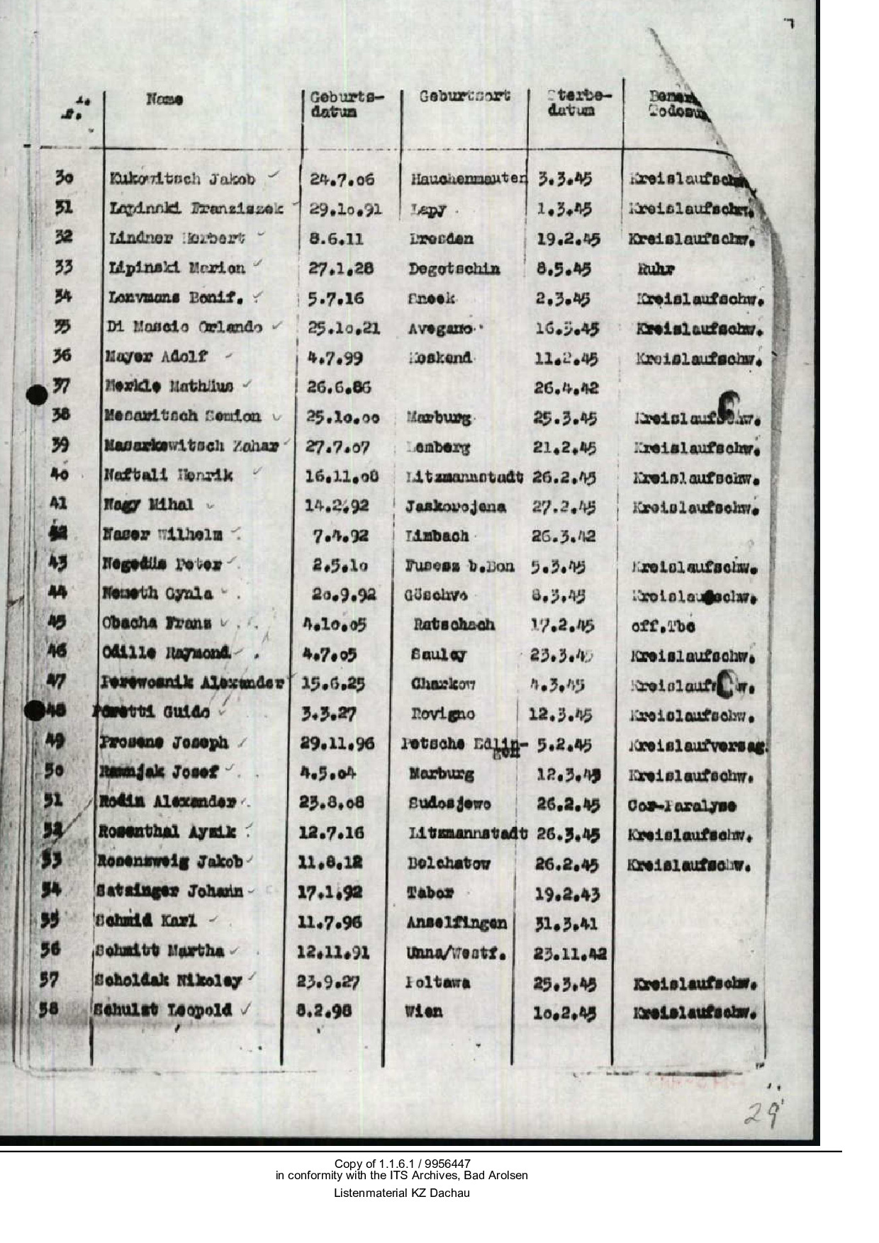Fingierte Todesbenachrichtigung des KZ Dachau. (ITS Bad Arolsen)