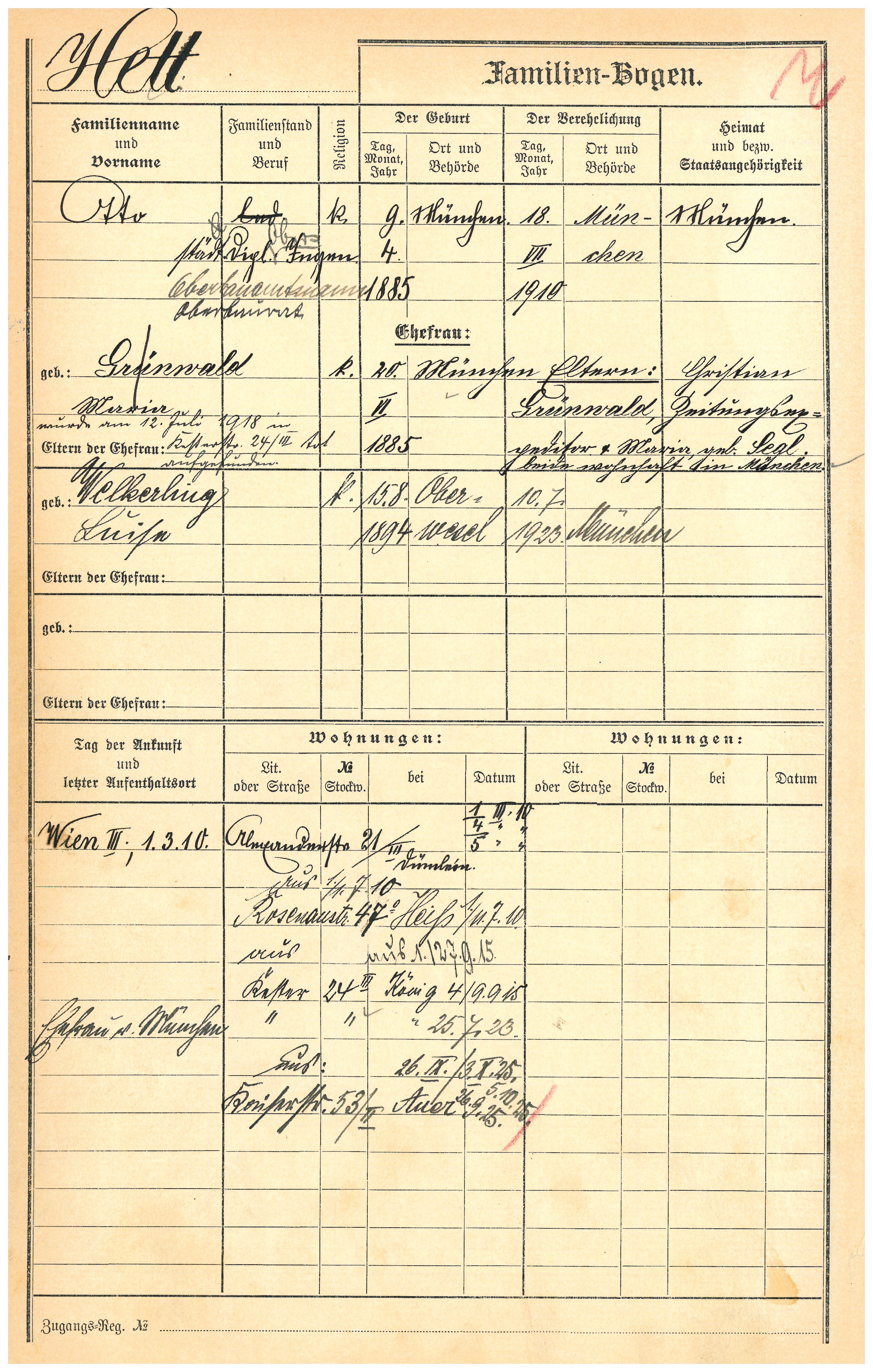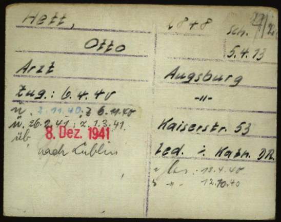 Meldebogen Otto Hett sen. (Stadtarchiv Augsburg)