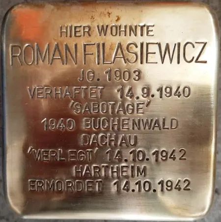Am 14.10.1942 wird Roman Filasiewicz nach 3 Monaten im KZ Dachau mit einem sogenannten „Invalidentransport“ mit weiteren polnischen Häftlingen in die Tötungsanstalt Hartheim bei Linz „verlegt“.17