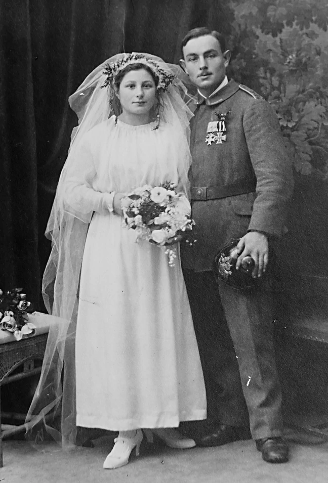 Es ist nur allzu verständlich, dass Rosa baldmöglichst eine eigene Familie gründen möchte. Kurz vor Kriegsende heiratet Rosa am 11. Oktober 1918 den damaligen Wagnergehilfen Franz Xaver Büchler (geb. 5.11.1893, verst. 5.1.1967), den Sohn eines Wagnermeisters aus Holzkirchen.8 Die Familie wohnt im Vierten Quergäßchen Nr. 7 in Augsburg.9