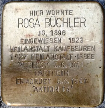 Die Standlisten (Zu- und Abgängsbücher) der Heil- und Pflegeanstalt Kaufbeuren verzeichnen am 5. Juni 1941 hinter dem Namen Rosa Genoveva Büchler die Bemerkung „verlegt“, wie bei weiteren 70 Frauen.22