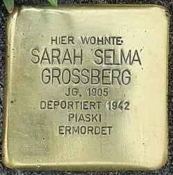 Sarah "Selma"1 Großberg kam am 31. Juli 1905 in Augsburg als älteste Tochter einer zur Jahrhundertwende aus dem damaligen Kongresspolen zugewanderten Kaufmannsfamilie zur Welt.2 Ihre Eltern waren der selbstständige jüdische Kaufmann und Zigarrenfabrikant Aron Großberg (1857-1928) und Machlya/Machlja Min(n)a3 Großberg, geb. Großberg (1884-1942).4 Beide stammten aus Łódź, kamen allerdings unabhängig voneinander nach Deutschland.5 Arons zweite und Minas erste Ehe schlossen diese am 2. Februar 1904.6 Sie wohnten in Augsburg-Pfersee im zweiten Stock der Körnerstraße 5.7 Sarah "Selma" hatte drei Geschwister: Jakob (1906-1941), Lina (1915-1986) und Walter Max (1927-1942). Außerdem hatte sie mit Rosa, Malka Maria und Hermann drei ältere Halbgeschwister aus erster Ehe des Vaters mit Debora-Rifka, geb. Schleifer (gest. 1902), zu welchen sie allerdings zu keinem Zeitpunkt Kontakt hatte.8