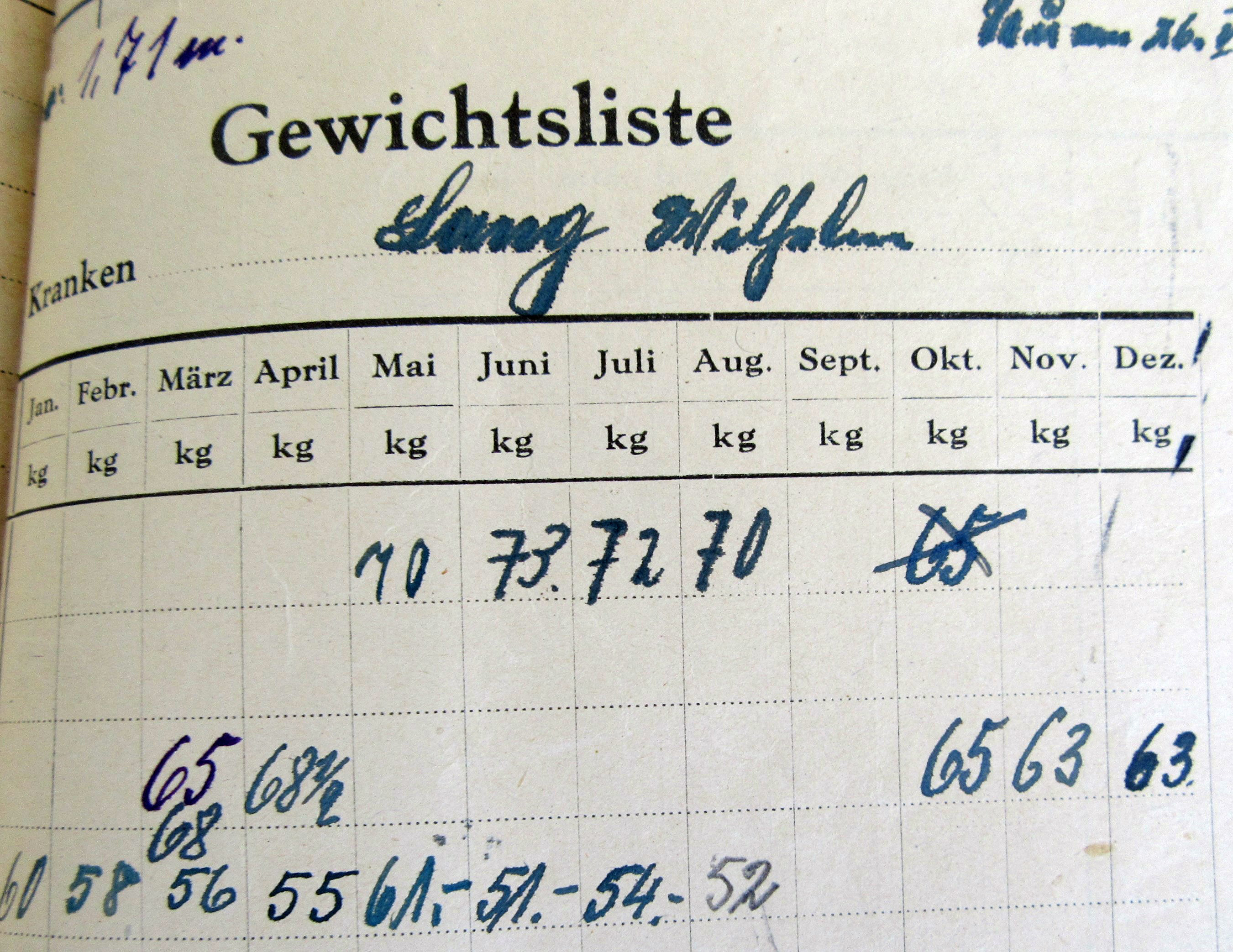 Gewichtsliste aus der Krankenakte. (Hist. Arch BKh Kaufbeuren)