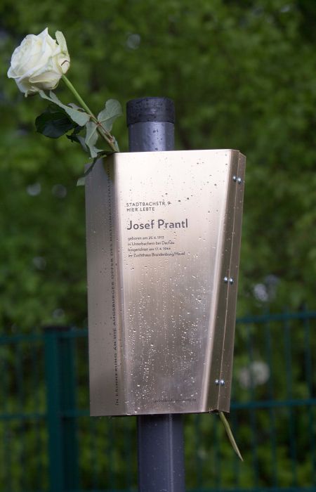 Am 4. Mai 2017 wurde ein Erinnerungsband für Josef Prantl in der Stadtbachstraße 9 angebracht.
